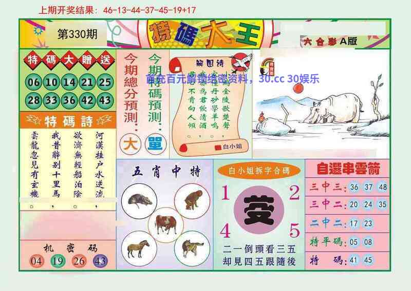 330期:凶美+两肖吉美+虎牛╣开:马36中